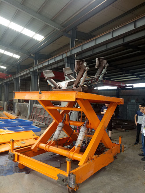 臺面加設(shè)軸承固定剪叉式液壓升降平臺,適用于流水生產(chǎn)線